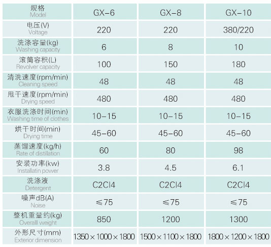 全自动干洗机技术参数
