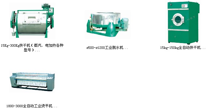洗衣房设备是集全自动洗脱机、电脑干洗机、工业洗衣机、烘干机、烫平机、脱水机为一体的综合配套设备。使用于宾馆、酒店、洗涤公司、厂矿企事业单位,具有方便、实用、维修简单、耐用度高等特点。包括干洗、水洗、烘干、熨烫、折叠各类工业洗衣机配套设备。